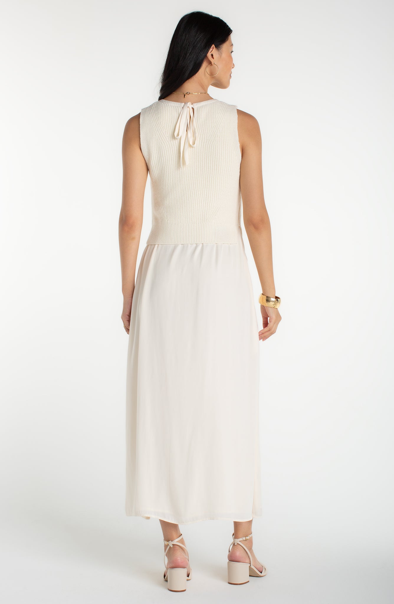 Sleeveless Tie Back with Knit Vest Overlay Dress - Cream