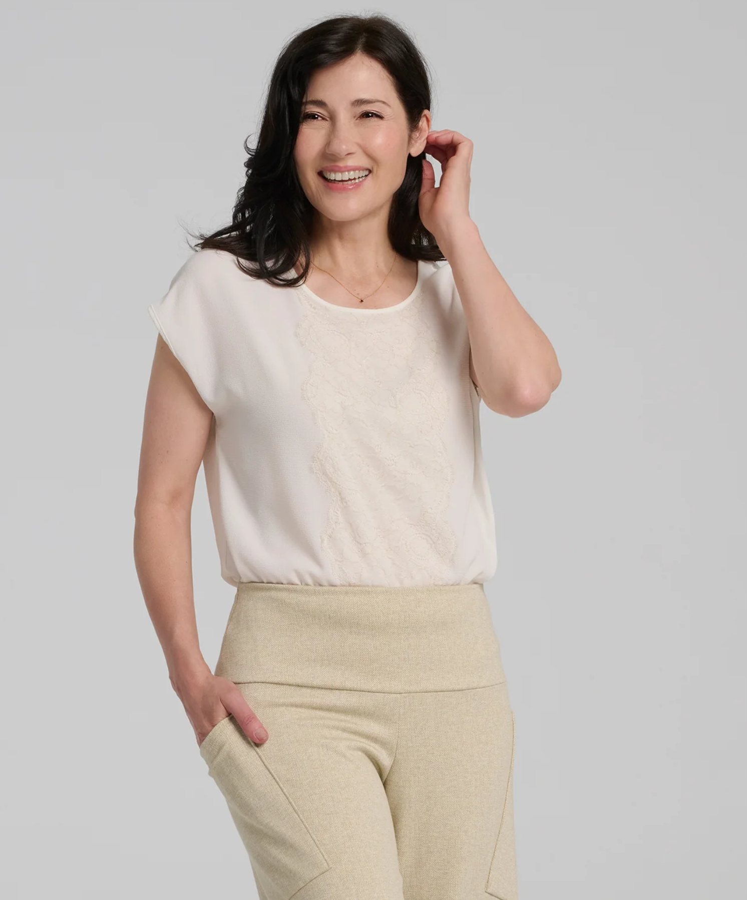 Colour: Off White with lace detail